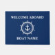 ようこそ航海のいかりロープスターヘルムあなたのボート名ドアマットネイビーブルーと白