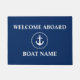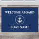 ようこそ航海のいかりロープあなたのボート名ドアマットネイビーブルーと白