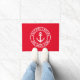 ようこそ船の名前航海のいかりのロゴ赤 ドアマット