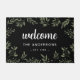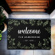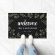 ようこそ黒いエレガント緑のパーソナライズされた葉 ドアマット