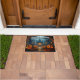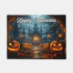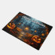 このクリエイティブハロウィーンのウェルカムマットは、照明カボチャの不気味なペアのイラストレーションを備えている。ご希望の感じように自由にオプションを調整してください。