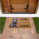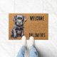 この可愛いラブラドールの子犬の姿でゲストへようこそ!あなたの家族の名前でパーソナライズ。Welcome Doormat - Dog Paw Printフロアマット
