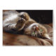 遊ぶこと準備ができたベッドカバーで横たわるアビシニア人の写真の油絵。 美しい薄緑の目。 猫好きのためのPurrfectのメッセージカードは、優勢な色黒い背景上の茶色そして日焼け、油を模倣するために絵を描かれる写真です。