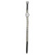 この女性時計は、白のフィールドに紫、ライトブルー、ブラウンの色合いのらせん状のアートデコデザインを持っている。同じもしデザインの色が違う欲しい。