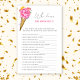 アイスクリームをテーマにしたブライダルシャワー飾は、水彩花模様とアイスクリームコーンを使用。文字は「彼女はスクープされた!」とピンクのスクリプトスタイリッシュタイポグラフィで言う。花や果物の水色アイスクリーム。