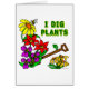 私は植物を掘る、花のデイジーとおもしろい庭師のことわざ、赤、黄色と紫の花とスミレ、蜂、女性のバグとショベル。GardenPagesによ素晴らしるガーデニングや読の種子カタログ用