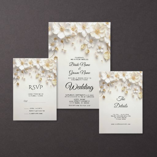 美しいアイボリーホワイトフローラ離れ金ゴールドサンキューカード