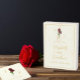タイムレスなエレガンス:伝統的金ゴールドスクリプ結婚トのタイポグラフィとアイボリーの背景とミニマルな赤いバラ。