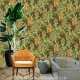 このエキゾチックなグラフィックアートは、クリエイティブのイメージの結果であり、島、オレンジ、サンゴ、ライムグリーン、イエロー、ブラウン、ホワイトの花のパターンの色を生成した。