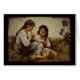 二人の小さな女の子が草の中に座っている。2人のうち年上の方が遊ブリキの笛を吹いた。ヴィンテージ19世紀アイルランドのアートワーク。