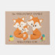 これは愛らしいアカギツネ家族を特色にするかわいいドア・マットです。 各底でコーナーは明るく着色された小さい鳥です。 イメージの上そして底で一致の茶色のあなたのカスタムな文字はあります。 イメージおよび文字は軽い日焼けの背景にそれらを際立たせます実際に置かれます!