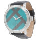 グランギアクアブルーまたはターコイズとグレーミニマルデザインメンズリストウォッチ。ヴィンテージスタイルブラックレザーバンドと。
