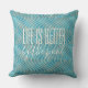 美しいアクアコンテンポラリーターコイズ青い灰色のトープ色の波のパターンは、かわいい人生はプールの引用文文字により良い。様々なデコーモダンルのアクセントとファッションアクセサリーで利用可能なホームパテインスパイアオ、ポーチ飾、またはプールデッキ屋外宇宙。