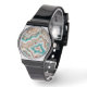 アクアターコイズ赤面ピンクローズ金ゴールドマーブルパターン 腕時計