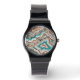 アクアエレガントターコイズ、ホワイト、赤面ピンク、金ゴールド大理石の波のアートパターンを備えた腕時計で素晴らし、あなたの服を強化する。この時計は自分や特別な人のための理想的な贈り物を作り、それはあなたの毎日のファッションに美しい追加として機能する。