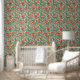 アクアティール(緑がかった色)グリーンオレンジアールヌーボー壁紙