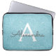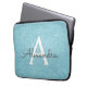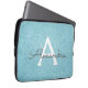 アクアティール(緑がかった色)ブルーグリッター&スパークルモノグラム ラップトップスリーブ