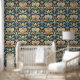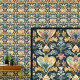 アクアブルーイエロー金ゴールドアールヌーボー壁紙