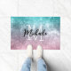 アクアブルーピンクシーグラデーション銀河系抽象芸術モノグラム ドアマット