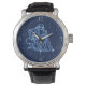 〔占星術の〕十二宮図のシンボルを描いた時計は、星が星座の星々に覆われた柔らかいシルバーブルーのアクエリアスのダークブルーの星空の背景に