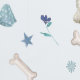 デザインは白のウェストハイランドテリアを備え、トップハット、メガネ、ネクタイ、スカーフ、ライトブルーの背景の骨など、青と黒の様々なアクセサリーを備えている。ウェスティーズに対する愛情を示せ!