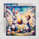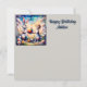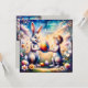 イースターバニーの衣装を着た可愛い小さな男の子祝、イースターバニーとイースターの復活祭。カードのグリーティングは「ハッピーイースターアシュトン」。カードの背面には、フロント写真の小さなバージョンとメッセージに十分書な領域がある。AI Bingのイメージクリエー絵を描タの協力を得て作られたコンピュータ生成の作品。