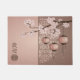 ピンクと茶色のアジアの提灯とさくらんぼの花の木がピンクと茶色の背景に半窓のスタイルを持つ。の「ようこそ」という言葉との書紋章が中国のデザインを完成させる。見た目と独創性を持つように美ユニークしく設計された。オリエエレガントントデジタルアートの印刷されたフォーマットは、それが完璧なギフトユニークを作る。