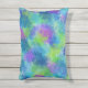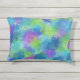 緑、紫、ラベンダー、青、アクアの色合いの抽象芸術がこの枕を優雅に。