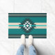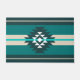 背景アステカに白、ベージュ、ターコイズ色の幾何学的な形状を持つ民族的ボヘミアンのストライプの模様
