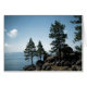 タホ湖を見下ろす岩の丘の上の松の木のグループの写真。