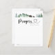 赤ちゃんシャワー祈りの言葉カード水色の常緑樹、山やママとベビーベア。