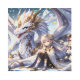 アニメガール&ホワイト&金ゴールドドラゴン メタルプリント