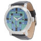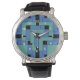 アネックスの男性、女性、子供のeWatchの白い数字の腕時計。アネックスはVexenwraithによって作成された抽象デザインで、黒い背景にターコイズと青いブロックで構成されている。