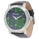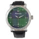 レザースタイリッシュストラップ腕時計、クラシックブルー、グリーン、および白いクランのアバクロムビータータンチェックの格子模様と顔上に、白い数字とドットで時間の間。ホワイトカスタム文字読のAbercrombieと望むものパーソナライズされたに読することができます。