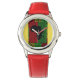 あなたの手首に民族touchを追加し、赤、金ゴールドと緑のラスタ色に裏打ちされたマザーランドのシルエットとこの美しい時計で表す。