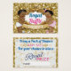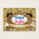 アフリカの王室のグリッタージェンダーがラッフルチケットを明らかにする金ゴールドグリッターの背景とピンクとブルーの文字と金の枠の上に愛らしい冠のアフリカのプリンスとプリンセスをファンシー特徴とする。これらのおむつラッフルインサートを当社のジェンダー王室のリビール招待状で使用する。シャワー客頼へのおむつを持ち込み、賞金を獲得するチャンスを得るためにラッフルに入る暗い王室の方法!