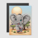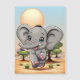ゾウかわいいベビーハッピー漫画のキャラクターがアフリカのサバンナの風景を飛び跳ねる。オリジナルベクトルイラストレーション著作権BluedarkArt TheChameleonArt.