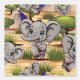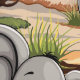 ゾウかわいいベビーハッピー漫画のキャラクターがアフリカのサバンナの風景を飛び跳ねる。オリジナルベクトルイラストレーション著作権BluedarkArt TheChameleonArt.