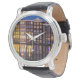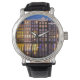 メンズヴィンテージブラックレザーストラップの腕時計アムステルダムの伝統的オランダ建物の写真と夜