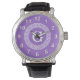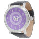 アメジストWhtギリシャ語鍵Rndフレームイニシャルモノグラム 腕時計