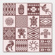 アメリカ先住民の民族柄と象徴のイラストレーション:手、日、トカゲ、カエル、鳥、亀、ココペリ