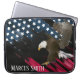 旗の上にハゲのイーグル抽象芸術と名前の黒い革の背パーソナライズされた景。名前は編集または削除できる。