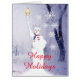 おもしろい愛国的な雪だるまのキャラクターは、明るい赤と青の旗のスカーフと冬の雪のシーンにかわいらしは、簡単にあなたのカードの内側に自分の個人的なメッセージを追加しユニークて、プロフェッショナル愛国的なアメリカのフェスティバルカードを作成するには、クリスマスの休日は、簡単に幸せな休日文字をクリスマスにににに変更。
