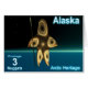 独立したアラスカ向けの切手は、茶色の色調のフラクタル画像を使用し、毛皮の服を着伝統的て、アイボリーの頭とハロンを持つ非常に様式化されたイヌイットの狩人を示唆している。狩人は暗い極地の冬を描いた背景に重ね合わせられ、青みがかった雪の表面と暗い星空を背景に北ライトの緑の光が地平線に輝く。文字読の「アラスカ」、「北極圏伝統」、「送料3ナゲット」が青と白で白熱[赤熱]光を放つ登場する。