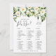 シックなブライダルシャワーゲームカードはアラバスターのフローラブライダルシャワーコレクションにマッチし、緑豊かな縁ど緑とクリーミーな白の水色フローラを特徴とする。両面カードで2つのゲームを1枚でゲット!フロント機能ブライダルビンゴ,バック上の財布の中にあるものを持つ。花嫁でシャワーの名前と日付をパーソナライズ。
