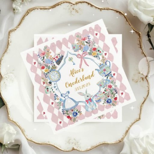 オネダーランドのアリスワンダーランドの誕生日のアリス誕生日お洒落招待状誕生日フローラ茶パーティー誕生日オネダーランドお洒落ピンクと金ゴールド不機嫌茶パーティー