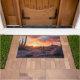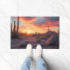 アリゾナ南西部の砂漠のロードランナーラグのDoormat。早朝の日の出の中で砂漠の風景とロードランナーのバキングの鮮やかな色の組み合わせ。砂漠のカスタマイズ大きさとスタイルを好みに合わせてイメージできる。南カスタマイズ南スタイル先住民アメリカのドアマット敷物とスタイル。ギフト素晴らしアイディア。アリゾナの美しい南西部の砂漠の写真の画像と野生の自然鳥。