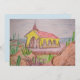 海と様々なサボテン絵画や岩ととげのある低木とアルバのアルトカリブのビスタチャペルの水色の鉛筆のスケッチと。