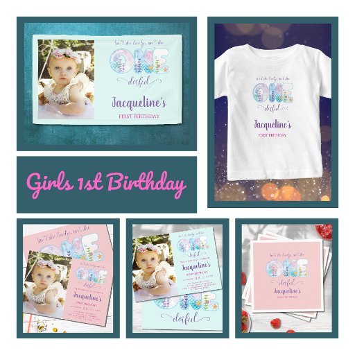 海の下に青い赤ちゃんの女の子のための素晴らしいパーティーを投げかわいらしる1番目の誕生日パーティーバナー。その特別な日のためにパーソナライズする簡単。