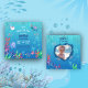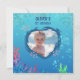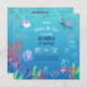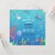海の下の可愛い水中海動物をテーマにした第1の誕生日の招待を水色の海の動物と海のサンゴ。小さな子供のための完璧な招待1歳の誕生日パーティー.この招待はウミガメ,タコ,星魚,美しい海のサンゴを持つ魚。